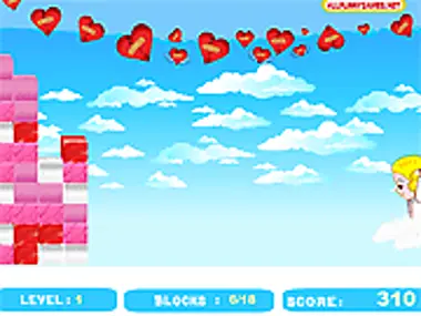 Click on groups of similar colored blocks in this Valentines puzzle game.