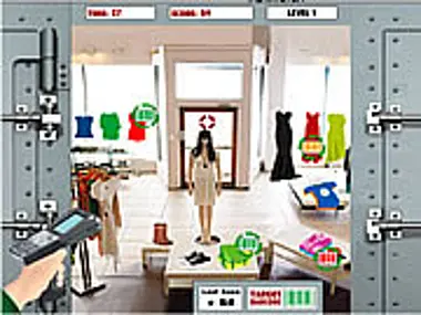 Aim the Datascan handheld scanner at targets around the room and click to scan a barcode.