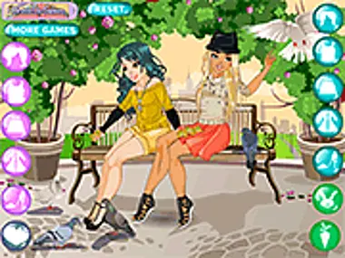 Te dwie ładne panie świetnie się bawią, spędzając razem czas. Uwielbiają robić zakupy i stroić się. Pomóż im wybrać strój, który będzie pasował do ich aktywności.