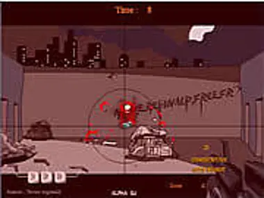 Shoot all the sticks that cross your view with different guns.