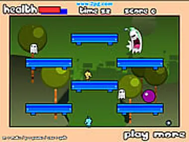 Run and jump on the platforms to clear the screen, while avoiding ghosts and collecting special stars in a limited time.
