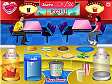 Lora marzyła o otwarciu burgerowni. Marzenie się spełniło. Bardzo smaczne burgery. Przychodzi wielu klientów. Musisz zapewniać szybką obsługę. Zamówienia nie mogą być opóźniane. Nie ma kelnerów, jesteś tylko ty. Czy potrafisz uszczęśliwić klientów?