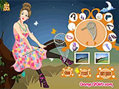 Chwyć swoją siatkę na motyle i chodź ze mną złapać kilka motyli w lesie! Błyszczą jak świetliki w nocy, więc łatwo je zobaczyć i złapać! Znajdź sobie ładną sukienkę i idziemy!