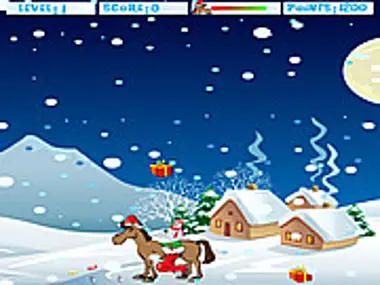 Jest Wigilia, a Święty Mikołaj leci na swoich saniach nad śpiącą wioską. Pojawia się z prawej strony i przesuwa w lewo, więc zawsze musisz być gotów, aby złapać go z prawej strony. Może rzucić prezent w dowolnym momencie i w dowolnym miejscu, więc twoim celem jest zebranie określonej liczby prezentów na każdym poziomie. Miej oczy szeroko otwarte i złap prezent dokładnie do świątecznej skarpety, w przeciwnym razie dotknie on części ciała świątecznego Konia, a prezent rozpadnie się na miliony czekoladowych batonów. W takim przypadku pasek energii zmniejszy się o 20 procent (5 pomyłek i gra się kończy). Naciśnij klawisz strzałki w lewo/prawo, aby poruszyć się w lewo/prawo, oraz spację, aby skoczyć. Będąc w bezruchu, zdobądź prezent za 100 punktów, a skacząc i sięgając po prezent – 150 punktów. Elf na saniach zbierze prezenty, których nie udało ci się złapać. Gra zawiera pięć poziomów, na każdym z nich Mikołaj dostarcza inne prezenty, które spadają coraz szybciej i szybciej, więc uważaj! Na koniec, jeśli twój ulubiony Świąteczny Koń ukończy wszystkie poziomy, będzie najszczęśliwszym koniem na świecie, dostarczając prezenty dzieciom w wiosce i życząc wszystkim Wesołych Świąt.