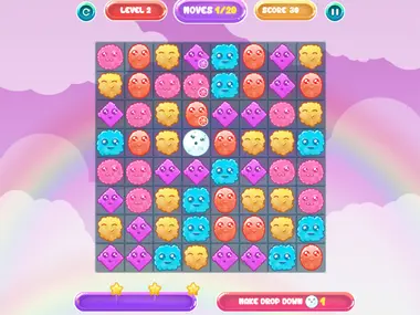 Te kolorowe chmury są całe poplątane! Czy potrafisz je uporządkować w tej uroczej i milutkiej grze logicznej typu „połącz 3 elementy”? Połącz je w grupy po trzy lub więcej, aby zdobyć wysoką liczbę gwiazdek na każdym wymagającym poziomie.