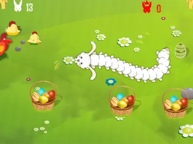 Collect all the eggs ang chicks and make your crazy easter bunny grow! Avoid the Hens and bombs!