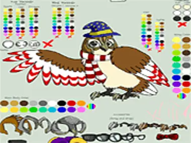 Piękny i szczegółowy Kreator Sów. Wybierz kolor części ciała, skrzydeł, plamek, pasków, a nawet pęków brwi! Następnie wyposaż swoją sowę w okulary, rynsztunek wojownika i wiele więcej.