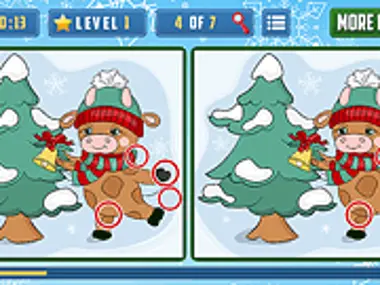 Cute Christmas Bull Difference to ciekawa gra dla dzieci typu „znajdź różnice” o tematyce świątecznej i nadszedł czas na dobrą zabawę! Twoim celem jest znalezienie różnic na tych zabawnych obrazkach w wyznaczonym czasie. Na tych obrazkach są małe różnice. Czy potrafisz je znaleźć? Są to zabawne grafiki, z którymi będziesz się dobrze bawić. To gra, która jest zabawna i edukacyjna, ponieważ pomoże ci rozwinąć twoje umiejętności obserwacji i koncentracji. Masz 8 poziomów i 7 różnic, na ukończenie każdego poziomu masz jedną minutę. Baw się dobrze i ciesz się grą tutaj na Y8.com!