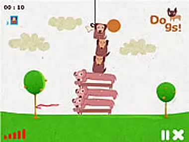 Zbuduj szczekający bastion poszukiwaczy kości! Układaj psy, aby dosięgnąć zwisającej kości. Jeśli twoja wieża utrzyma się stabilnie do końca czasu, przejdziesz do następnego poziomu.