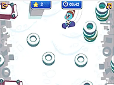 Pośmigaj na snowboardzie z postaciami z Niesamowitego świata Gumballa! Możesz wyrzeźbić ślady na zaśnieżonych ulicach z Gumbellem, Darwinem i Anais. Omijaj kamienie, hydranty i opony na trasie. Pędź przez gwiazdki po dopalacz prędkości w Gumball Downhill Dash!