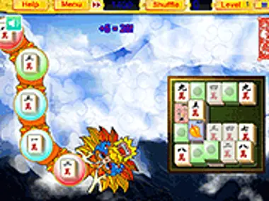 Use the Mahjong pieces within the flying dragon before he reaches the end.