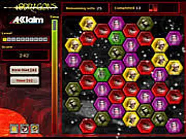 Click objects to form 3 or more of the same colored objects in vertical or diagonal. You must hurry before time runs out. There are special blinking hexas to vaporize more objects. Enjoy!