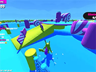 Fall guys and Fall girls Knockdown to zabawna gra online dla wielu graczy, która może pomieścić do 30 graczy na jednej planszy! Biegnij przez tor przeszkód, unikaj pułapek, przeszkód i dotrzyj do mety tak szybko, jak tylko potrafisz. Ci, którzy będą na ostatnim miejscu, zostaną wyeliminowani. Każdy poziom staje się coraz trudniejszy i trudniejszy, a graczy będzie ubywać, aż zostanie jeden, który zostanie na mecie ukoronowany jako zwycięzca gry. Gra jest bardzo interaktywna i z pewnością spodoba się graczom w każdym wieku! Zadzwoń do swoich przyjaciół i dołącz do gry już teraz!