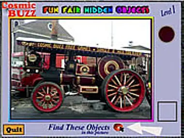 Wesołe Miasteczko: Gra w ukryte przedmioty. Znajdź wszystkie ukryte przedmioty na tych zdjęciach z wesołego miasteczka, aby przejść do następnego poziomu. Znajdź biedronkę, pająka i pszczołę. Trzy poziomy do ukończenia. Gra jest łatwa w obsłudze, ale nie wszystkie przedmioty łatwo znaleźć. Każdy poziom ma limit czasu. Gra typu „wskaż i kliknij”. Świetna zabawa na spędzenie wolnego czasu.