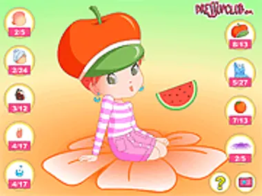 Ta szalona dziewczyna tak bardzo kocha owoce, że ubiera się również w różne owoce. Zmień jej wygląd nieco albo dobrze wszystko wymieszaj.