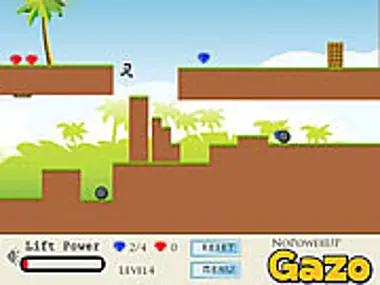 You have to collect all gems and get to the door. lift grounds to reach higher platforms.