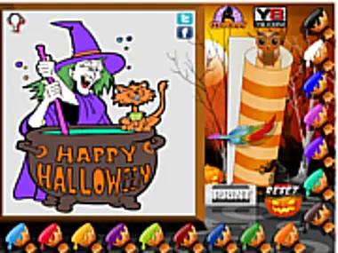 Make Halloween Party colorful by giving suitable colors to all. Enjoy Halloween Party!