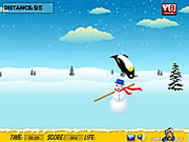 Help the little penguin to reach the target place by jumping and avoiding the holes and also by laying down from the snowman.
