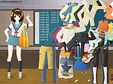 Dress Haruhi Suzumiya in lots of clothes and extras, lots of hairstyles!