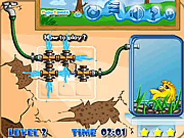 Sam dostał Flippera, rybkę, jako prezent urodzinowy od swojego taty. Powinieneś pomóc Samowi doprowadzić wodę do akwarium. Ułóż kafelki, aby połączyć te niekompletne rurociągi. Udowodnij swoje umiejętności hydrauliczne i uratuj Flippera.