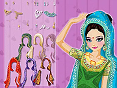 Ubierz tę hinduską pannę młodą na jej dzień ślubu, wybierz suknię i welon, które są bardzo ważne. Możesz również wybrać fryzurę i umalować ją według własnego gustu.