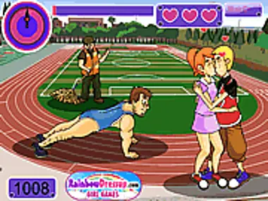 Trafieni strzałą miłości Kupidyna wprost na boisku sportowym, a to ci dopiero! Ta dwójka wysportowanych nastolatków nie zrezygnowałaby ani na moment ze swojego intensywnego treningu, przygotowując się do kolejnych ważnych zawodów – no cóż, przynajmniej dopóki nie uderzyła w nich miłość! Czyż to nie jest urocze! Ponieważ teraz tak bujają w obłokach, użyj swojego czujnego oka, aby upewnić się, że nikt nie zobaczy ich pocałunku, bo inaczej ich kariery sportowe mogą zostać zagrożone.