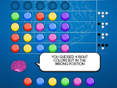 Mastermind to nie jest tylko zwykła gra w zgadywanie. To coś, co przetestuje Twoje umiejętności dedukcyjne. W tej grze będziesz musiał znaleźć dokładną pozycję kolorowych kul w sekwencji. Każda kula może być użyta tylko raz i będziesz miał ograniczoną liczbę prób, więc pomyśl uważnie. Po umieszczeniu wszystkich kul Mastermind odpowie Ci, mówiąc, czy trafiłeś w odpowiednie kolory (szara kula) i która kolorowa kula jest na właściwej pozycji (czarna kula). Aby uzyskać prawidłową odpowiedź, będziesz musiał oprzeć się na podpowiedzi Masterminda. Odgadnij sekwencję w jak najmniejszej liczbie prób, a zdobędziesz wyższy wynik!