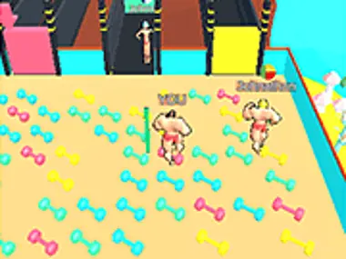 Witamy w zabawnej grze 3D o wyścigu mięśni, z trzema przeciwnikami i wieloma interesującymi wyzwaniami. Musisz zbierać hantle i stawać się silniejszym, aby pokonać swoich przeciwników. Zagraj w Muscle Race 3D na Y8 i ukończ wszystkie poziomy gry, a także kup nową postać w sklepie gry.