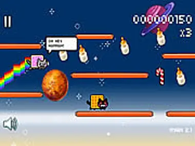 Zbieraj jak najwięcej jedzenia i napojów z NYAN CAT! Uwaga: NYAN CAT: Zagubiony w Kosmosie z muzyką jest niezwykle wciągający! Graj z NYAN CAT tylko na własne ryzyko!