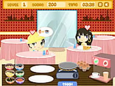 Zbierz swoich stałych bywalców i zaserwuj pyszne omlety! Jak grać w Omelet Restaurant: Posadź swoich klientów przy pustych stolikach i przyjmij ich zamówienia. Wrzuć jajko na patelnię i poczekaj, aż będzie gotowe, a następnie połóż je na talerzu. Dodaj odpowiedni dodatek, a następnie zaserwuj omlet!