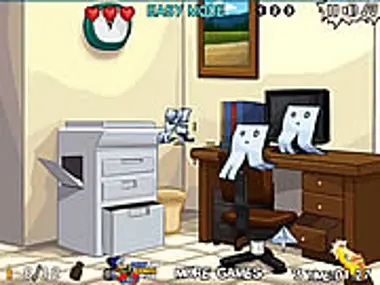 This is the paper mania where all those papers decided to attack you. Be sure to kill as many as you can so you can upgrade your gun.