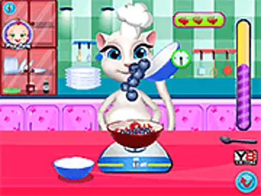Pomóż Angeli zaspokoić jej apetyt pysznymi naleśnikami. Pomóż jej znaleźć odpowiednie składniki w jej dużej kuchni i postępuj zgodnie z przepisem, aby przygotować masę naleśnikową. Musisz także zrobić słodki dżem owocowy. Po usmażeniu naleśników, zgodnie z instrukcjami, możesz polać je dżemem i udekorować naleśniki tak, jak lubisz. Angela będzie zadowolona ze swoich pysznych naleśników!
