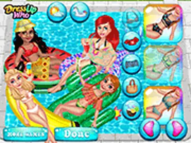 Te urocze księżniczki uwielbiają spędzać czas i urządzać fajne imprezy. Tym razem chcą rozkręcić super imprezę basenową! Czy możesz im pomóc w doborze stroju kąpielowego?