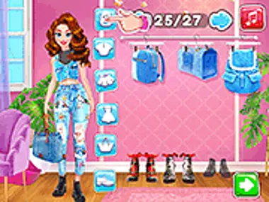 Księżniczki słyną z noszenia eleganckich sukni, ale styl na dziś to #denim! Ciekawa, jak wyglądałyby te wytrzymałe dżinsy? W takim razie wypróbuj! Mieszaj i dopasowuj ubrania i zobacz, który styl pasowałby najlepiej. Kto powiedział, że księżniczka nie może nosić dżinsów w stylu rock star? Właściwie wyglądają świetnie na naszej księżniczce! To niewątpliwie świetny, swobodny strój dla dziewczynek!