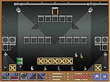 Experiment with each object to see what it does.To get to the next level, save the needed quota of Roadies before the time runs out. the number of Roadies saved, needed and still on stage is displayed at the bottom of the screen, along with the amount of lives and time you have left before the gig starts.