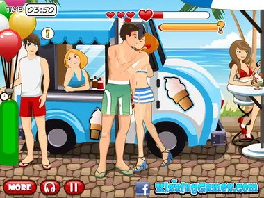 Love is in the air at the beach. Place a kiss on the surfer boy and be sure not to get caught.
