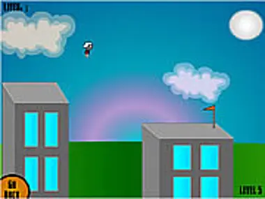 Jump from roof to roof. Difficulty increases with other obstacles to avoid.