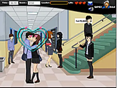 W liceum spraw, aby młoda para pocałowała się, tak by nie zostali zauważeni przez innych. Pamiętaj! Spraw, aby pocałowali się niezauważeni, ponieważ w przeciwnym razie przegrasz grę. Wypełnij pasek pocałunków w wyznaczonym czasie, aby przejść do kolejnych poziomów.