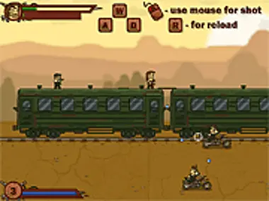 Brave mercenary, must protect the train from the attacks of robbers! Shoot everything that moves and be careful – do not fall from a moving train!