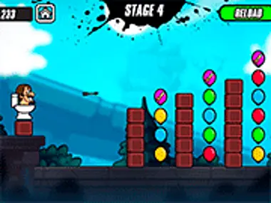 Skibidi Stickbloons to fajna gra z bohaterem skibidi toalety i kolorowymi balonami. Sprawdź swoje umiejętności w tej grze i spróbuj przebić wszystkie balony na poziomie. Zagraj w tę grę na swoim urządzeniu mobilnym lub komputerze na Y8 i odblokuj wszystkie poziomy. Celuj dobrze, aby unikać przeszkód i trafiać w cel. Baw się dobrze.