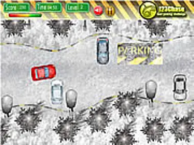 Drive the car into the slick with ice parking lot, without hitting the corners and other cars found on the way.