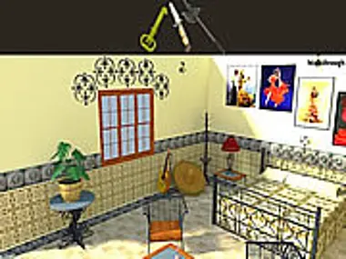 You are trapped in a spanish room while searching for a tool. You will have to escape from the place by using objects which are present there.