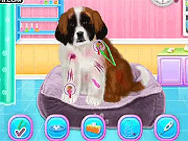 Zapewnij wspaniały dzień temu uroczemu szczeniakowi i spróbuj nauczyć się, jak odpowiednio się nim zaopiekować w tej grze o zwierzętach. Wszystko, co musisz zrobić, to zrozumieć ból, przez który przechodzi ten szczeniak bernardyna, podczas gdy robisz wszystko, co w twojej mocy, aby odwrócić jego uwagę od prawdziwego problemu. Użyj każdego narzędzia, które masz, aby przeprowadzić leczenie, a gdy szczeniak poczuje się lepiej, możesz trochę pobawić się w jego ubieranie.