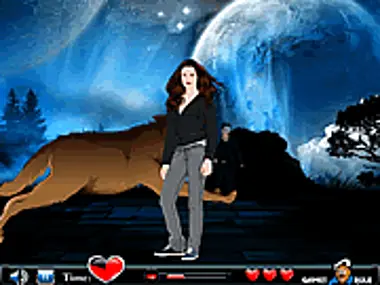 Gra twilight kisses-eclipse twilight stars Bella, Edward, Jacob, gdzie Edward (wampir) i Bella są zakochani, a Jacob (wilkołak) kocha Bellę. Złoczyńcy w grze, Victoria i Riley – nowo narodzone wampiry – próbują zaatakować Bellę, podczas gdy Edward i Jacob starają się chronić Bellę przed wrogami. ROZGRYWKA: *Edward i Bella są zakochani, a Jacob kocha Bellę. Kliknij parę, aby się pocałowali, podczas gdy złoczyńcy próbują zaatakować Bellę. * Kliknij złoczyńców, a Edward ich zaatakuje. Jacob zaatakuje złoczyńców, zmieniając się w wilkołaka. *Jeśli złoczyńca zaatakuje Bellę, stracisz życie. W każdym poziomie masz tylko 3 życia. *W każdym poziomie wypełnij wskaźnik pocałunków w wyznaczonym czasie, aby przejść do kolejnego poziomu, w przeciwnym razie przegrasz grę.