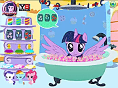 Wykąp Twilight Sparkle w relaksującej kąpieli. Zadbaj o uroczego kucyka i spraw, by poczuła się rozpieszczona i zaopiekowana. Kiedy będzie czysta, a jej włosy suche, ubierz ją w specjalny strój. Miłej zabawy!
