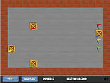 Rozwiąż zagadki w magazynie, aby doprowadzić go do porządku! Przesuń skrzynie na ich właściwe miejsca (oznaczone flagami). Kliknij i przeciągnij skrzynie w kierunku, w którym chcesz je przesunąć.