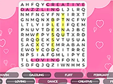 Chcesz znaleźć wspaniały sposób na spędzenie tegorocznych Walentynek? Znajdź więcej sposobów, by wyrazić swoją miłość do partnera! Szukaj właściwych słów w gąszczu liter i działaj. Zaznacz litery, aby ułożyć słowa miłości i skraść ich serca!