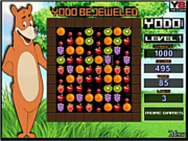 Yodo bejeweled to klasyczna gra, podobna do gier typu Bejeweled, tylko tym razem grasz z Yodo. Gra Yodo Bejeweled jest podzielona na 3 poziomy trudności, z których każdy zawiera kolejne 5 poziomów, gdzie musisz eliminować jak najwięcej owoców i osiągnąć wymagany cel.