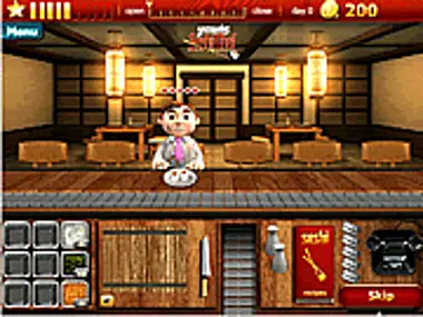 Zostań ulubionym szefem kuchni sushi dla wszystkich, dekorując swoją restaurację, wykonując sztuczki nożem lub serwując sake oczekującym klientom.