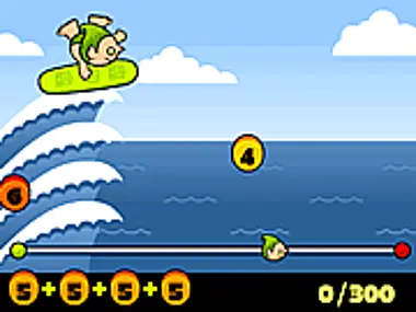 Even in the off-season, Xmas elves have package quotas on the brain! In this game, score epic points on groovy swells, and score enough to ride the waves to the next level.
